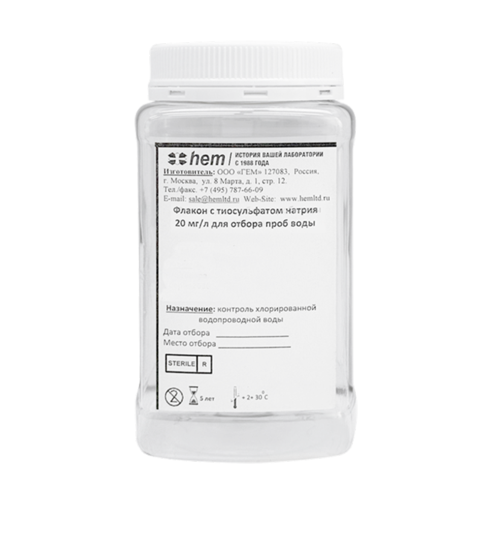 Флаконы с водным раствором тиосульфата натрия идеально подходят для анализа воды, предназначенной для потребления человеком (20 мг/л - согласно ISO/FDIS 19458:2006), для бассейнов (120 мг/л) и любых других вод, где хлор может изменить состав образца