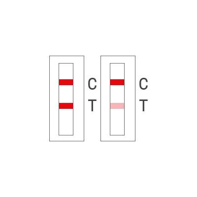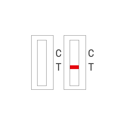 в случае, если линия контроля качества C не проявляется, результат будет являться недействительным, независимо от того, проявится ли линия обнаружения (как показано на рисунке ниже); тестирование необходимо будет провести заново.